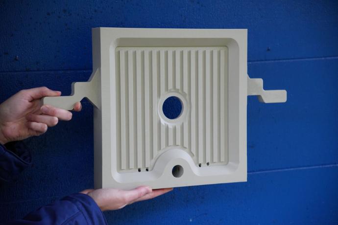 Filter plates also vary in size, cake thickness, geometry (open or leak-free), material (PP, PTFE, cast-iron) according to applications (e.g. food industry)